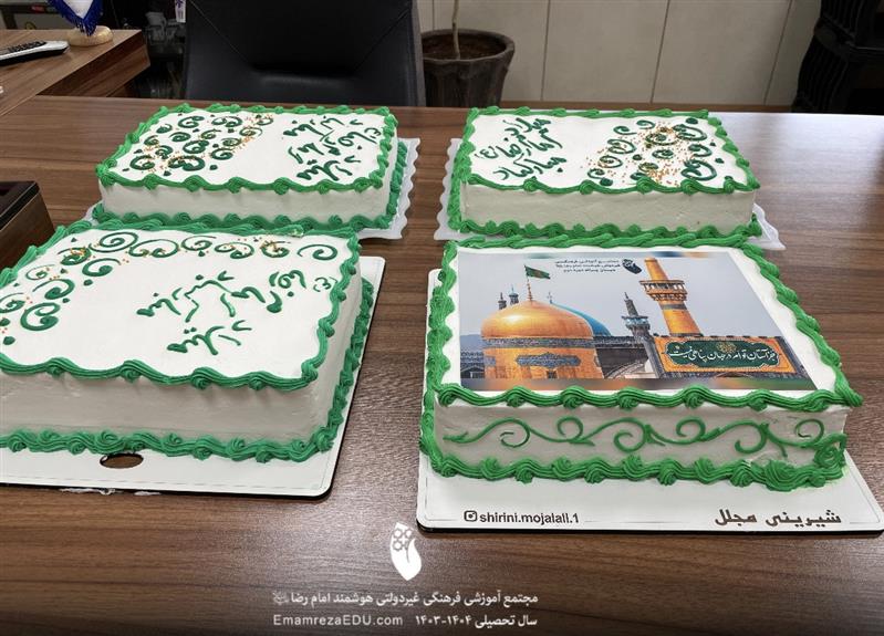 پس از پایان مراسم ، از دانش آموزان به وسیله کیک میلاد امام رضا (ع) پذیرایی شد.