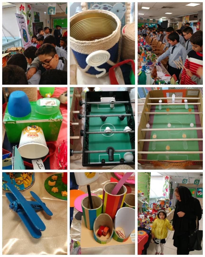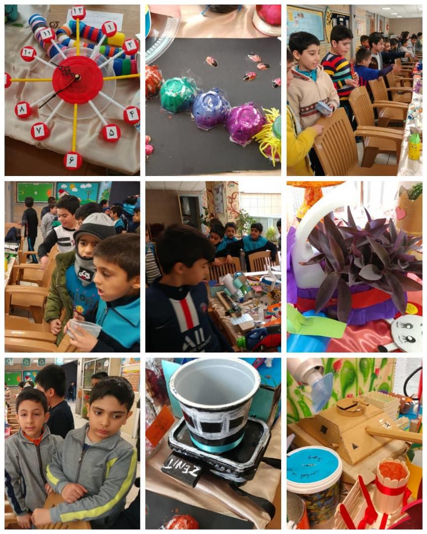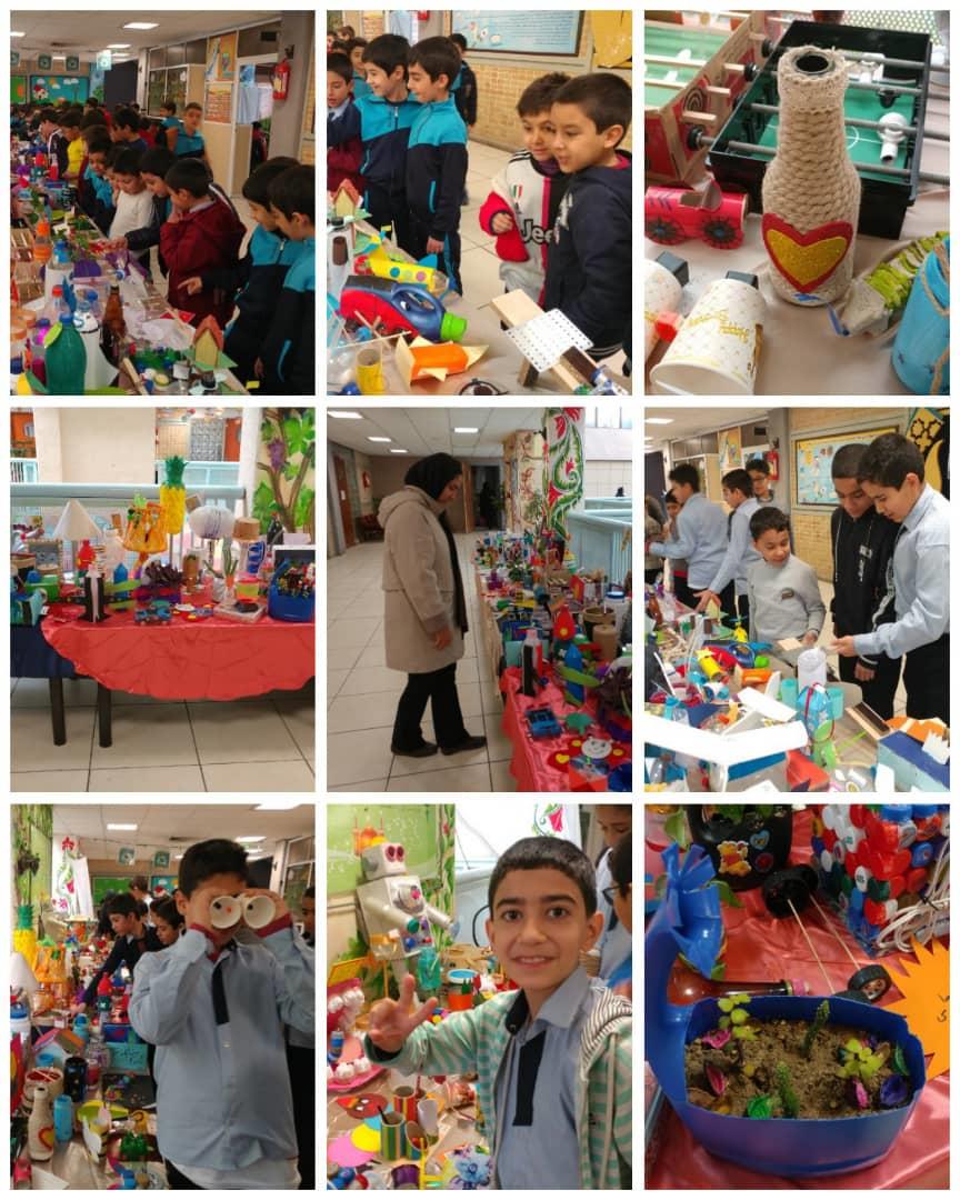 نمایشگاه از دست ساخته های بازیافتی توسط دانش اموزان به مدت دوروز در دبستان پسرانه