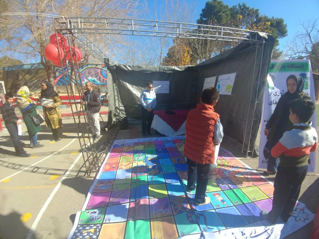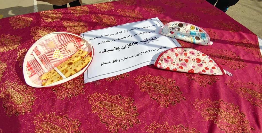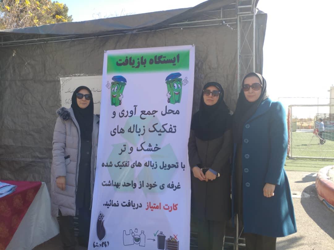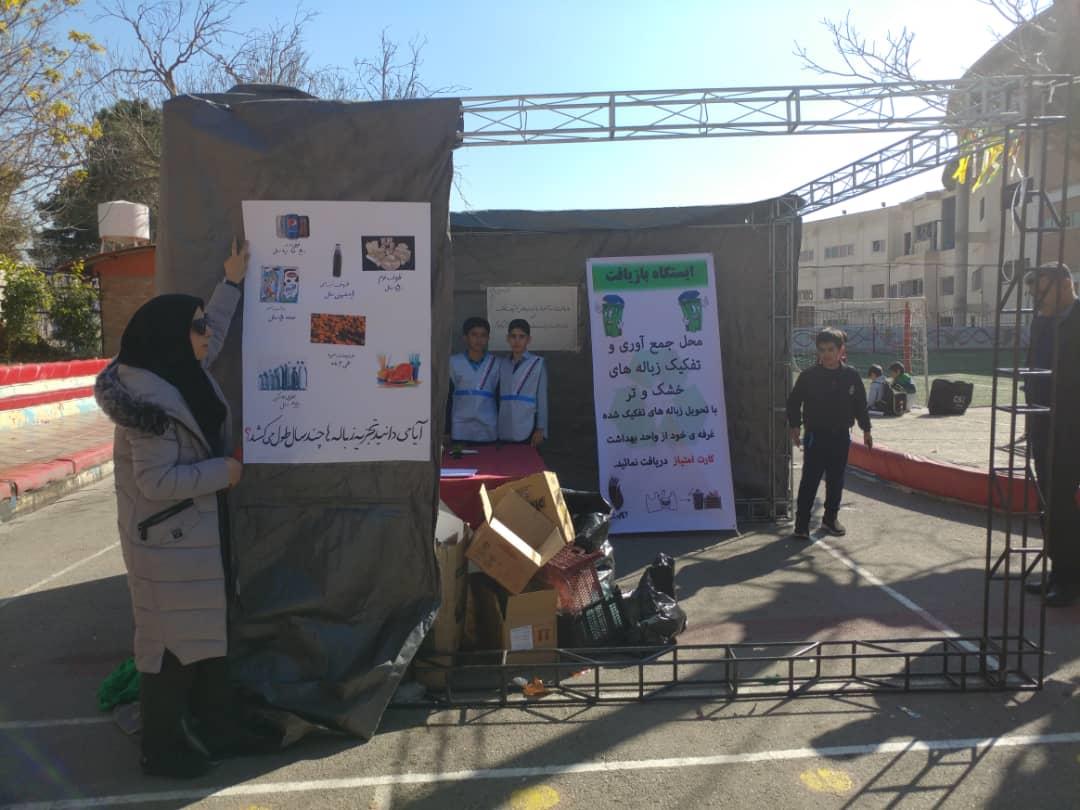 دایر کردن ایستگاه بازیافت جهت تفکیک زباله خشک و تر ،نصب پلاستیک به تفکیک رنگ جهت جمع اوری زباله خشک و تر برای تمامی میزها.دعوت از کارشناس شهرداری وانجام بازی مار پله با بچه ها در ایستگاه .نصب پلاکاردهای بازیافت و بنر در ایستگاه وارایه کیف لقمه جهت کاهش مصرف پلاستیک و در نهایت تحویل کیسه ها به غرفه و دریافت کارت امتیاز .